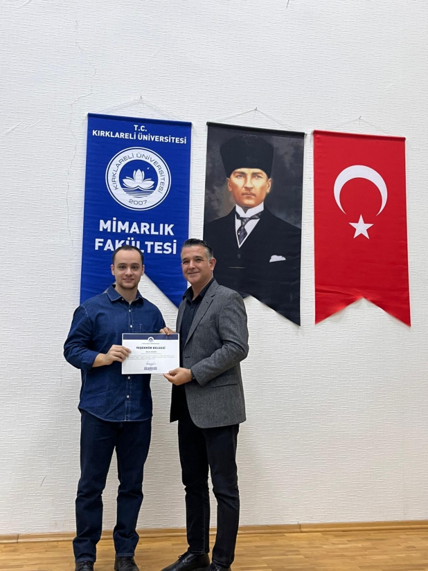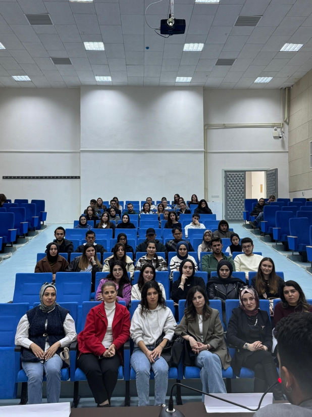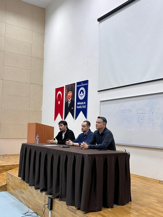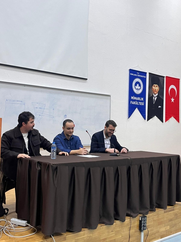 Günün ikinci programı ise Mimarlık Bölümü mezunu Halil ÖLMEZ’in katılımıyla yapıldı. ÖLMEZ, mimarlık pratiğindeki deneyimlerini, proje yönetimi süreçlerini ve mezuniyet sonrası kariyer gelişimine ilişkin gözlemlerini öğrencilerle paylaştı.
