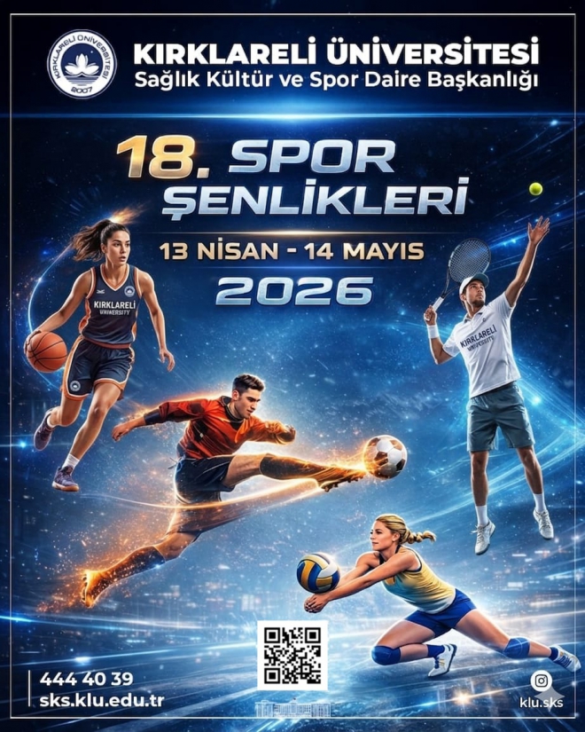 18. Kültür, Sanat ve Spor Şenlikleri kapsamında, Sağlık Kültür ve Spor Daire Başkanlığı tarafından düzenlenecek olan spor etkinlikleri 13 Nisan - 14 Mayıs 2026 tarihleri arasında gerçekleştirilecektir.